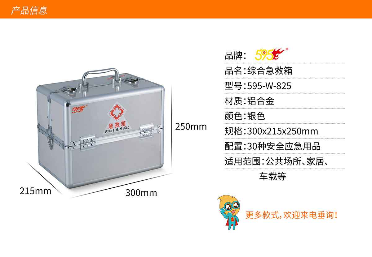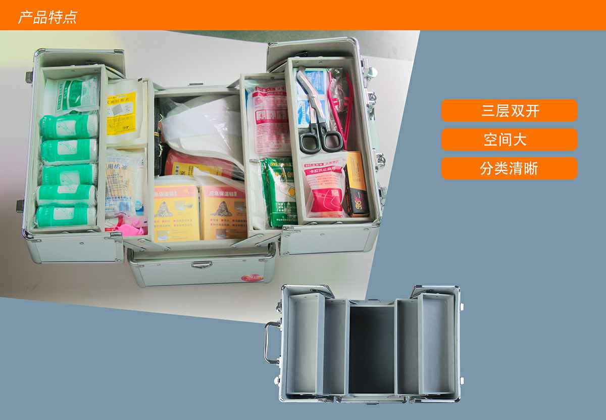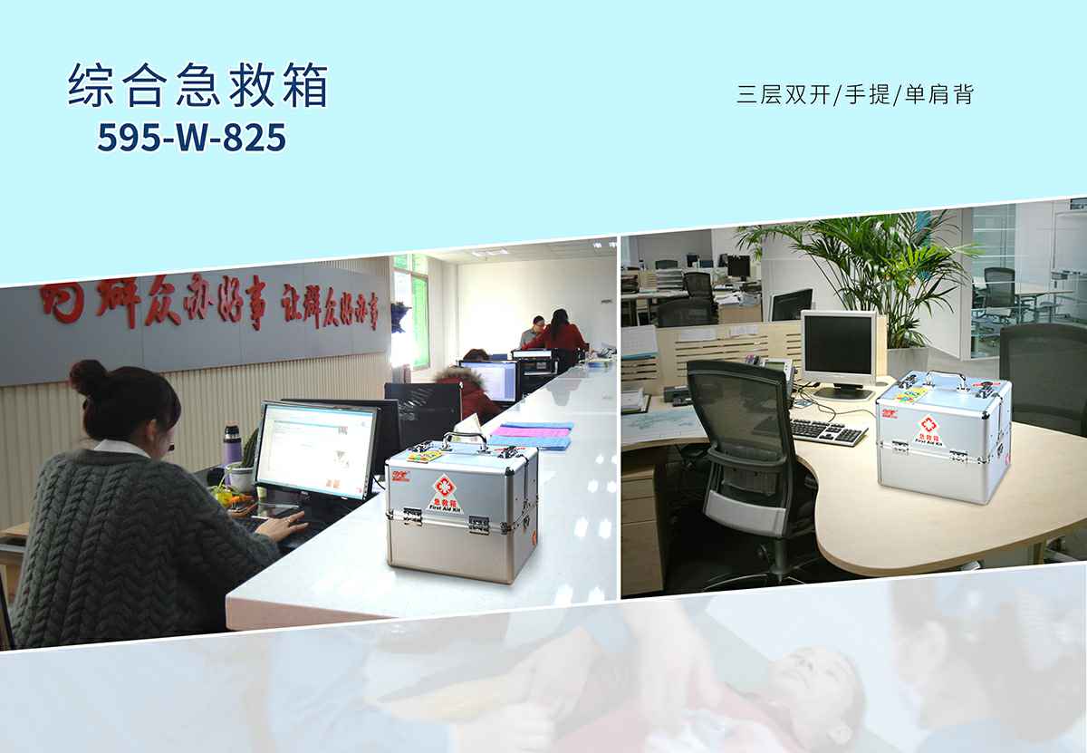 珠海旭尧可持续发展咨询有限公司综合急救箱,独特的箱体设计,适用于劳保、厂矿、公共场所、办公室、车间、学校、社区、健身房、实验室、建筑工地等人员密集的场所及防灾减灾等领域。