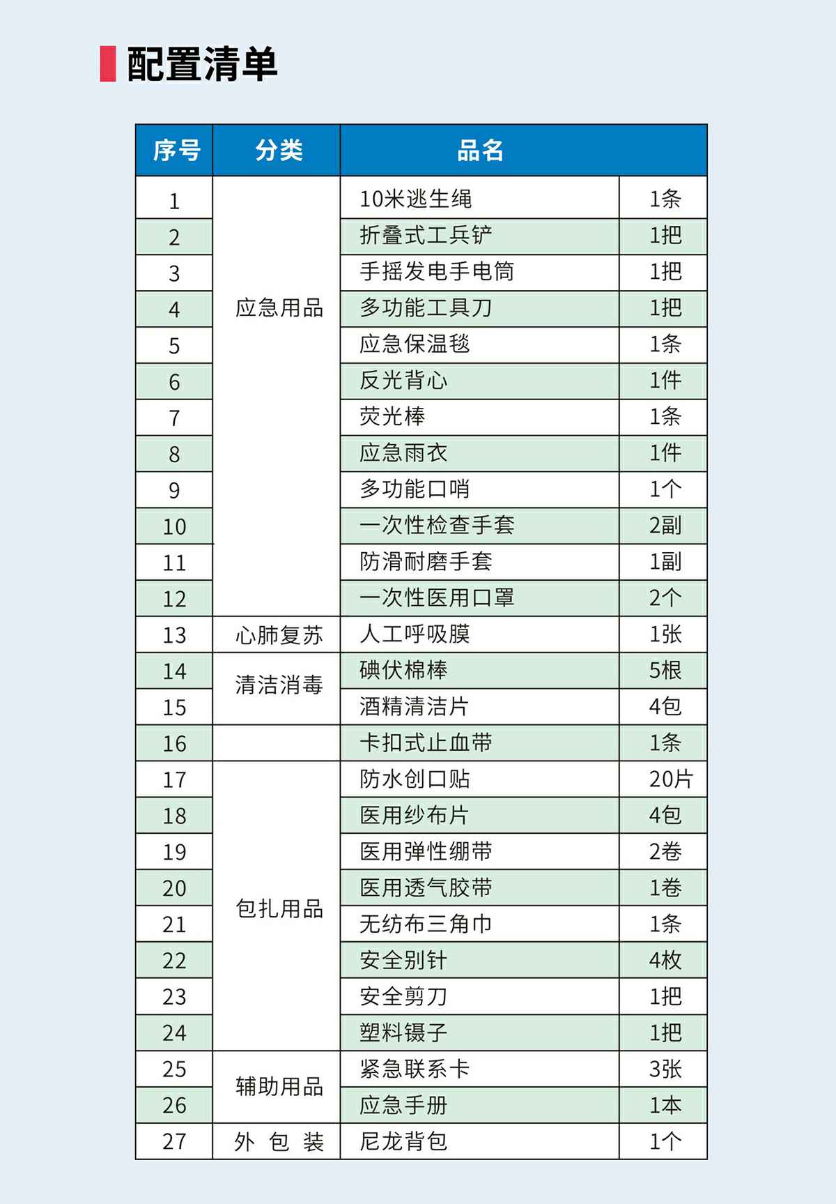 珠海旭尧可持续发展咨询有限公司防灾应急包,适合突发灾害事故时恶劣环境下使用,配置全面、科学,满足从日常保健到灾难自救逃生的全面需求。
