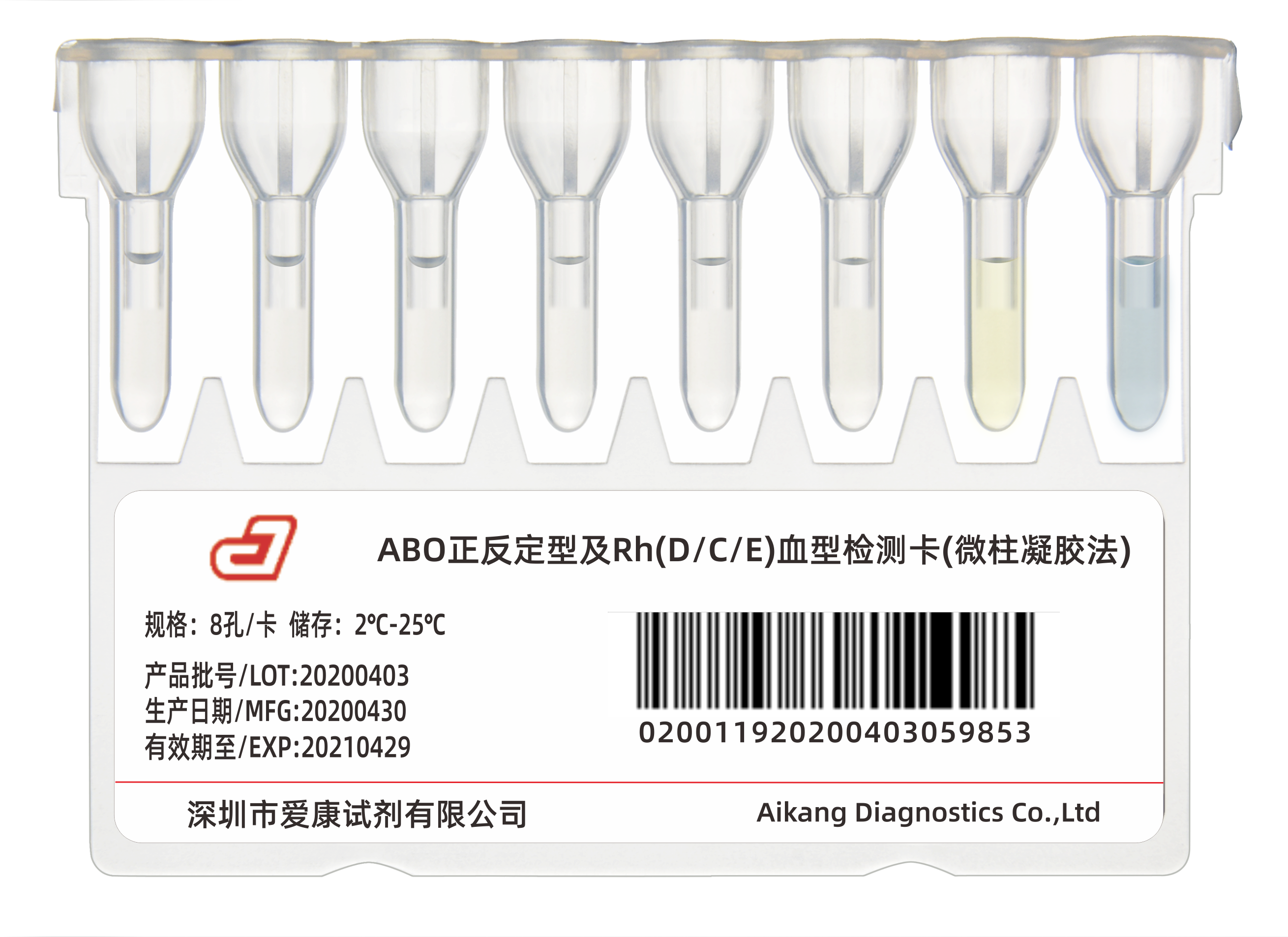 采用微柱凝胶技术,8孔卡设计,适用于临床进行ABO血型正反定型及RhD、RhC、RhE血型抗原的临床检测