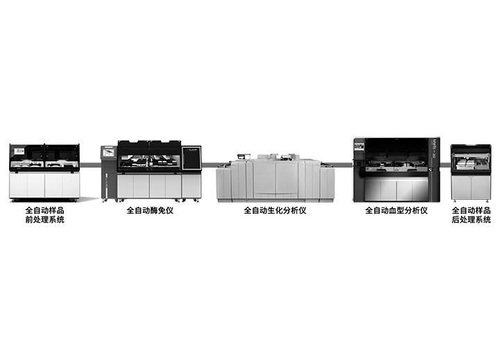 大连俊峰汽车配件配送有限公司将自主研发的全自动样本全处理系统、全自动酶免仪、全自动血型分析仪、全自动样本回收系统与日立7600生化分析仪进行整合,设计为一套完整成熟的适合血站的全实验室自动化流水线系统的解决方案,满足临床全自动化的检测需求。
